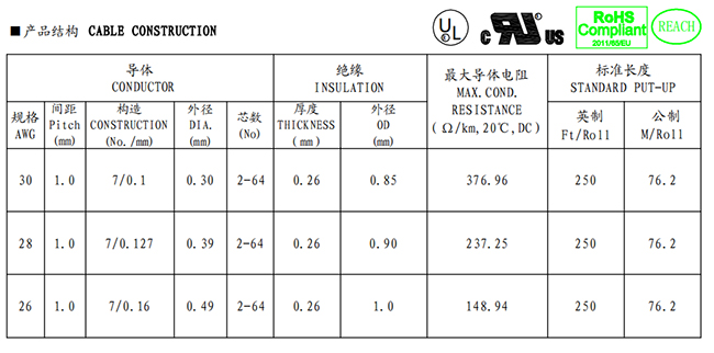 11.UL2651排線包裝:610米/卷