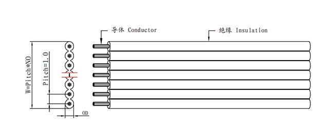 9.UL2651排線絕緣厚度為:0.26MM 間距為:1.0MM