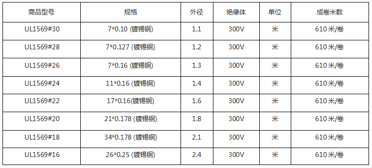 | 產(chǎn)品名稱:UL 1569 用于電子、電器設(shè)備內(nèi)部連接 一.技術(shù)參數(shù) 技術(shù)標(biāo)準(zhǔn):UL758、UL1581 額定電壓:300V 額定溫度:﹣60℃-﹢105℃ 導(dǎo)體類型:鍍錫銅絲 絕緣材料:PVC 產(chǎn)品顏色:紅/藍(lán)/黑/白/綠/黃等等 二.產(chǎn)品用途 廣泛應(yīng)用于航空、冶金石油、電子電氣、儀器儀表、家用電器、燈飾照明、變壓器以及電機(jī)引出線、汽車電線。 三.詳細(xì)規(guī)格 ![]() 我司擁有先進(jìn)的電子線壓出機(jī),并已經(jīng)取得相關(guān)的UL認(rèn)證、環(huán)保認(rèn)證,不同規(guī)格的線材,皆可按需定做,歡迎各位客戶來圖定制、來樣做貨,我司提供免費(fèi)打樣。 |